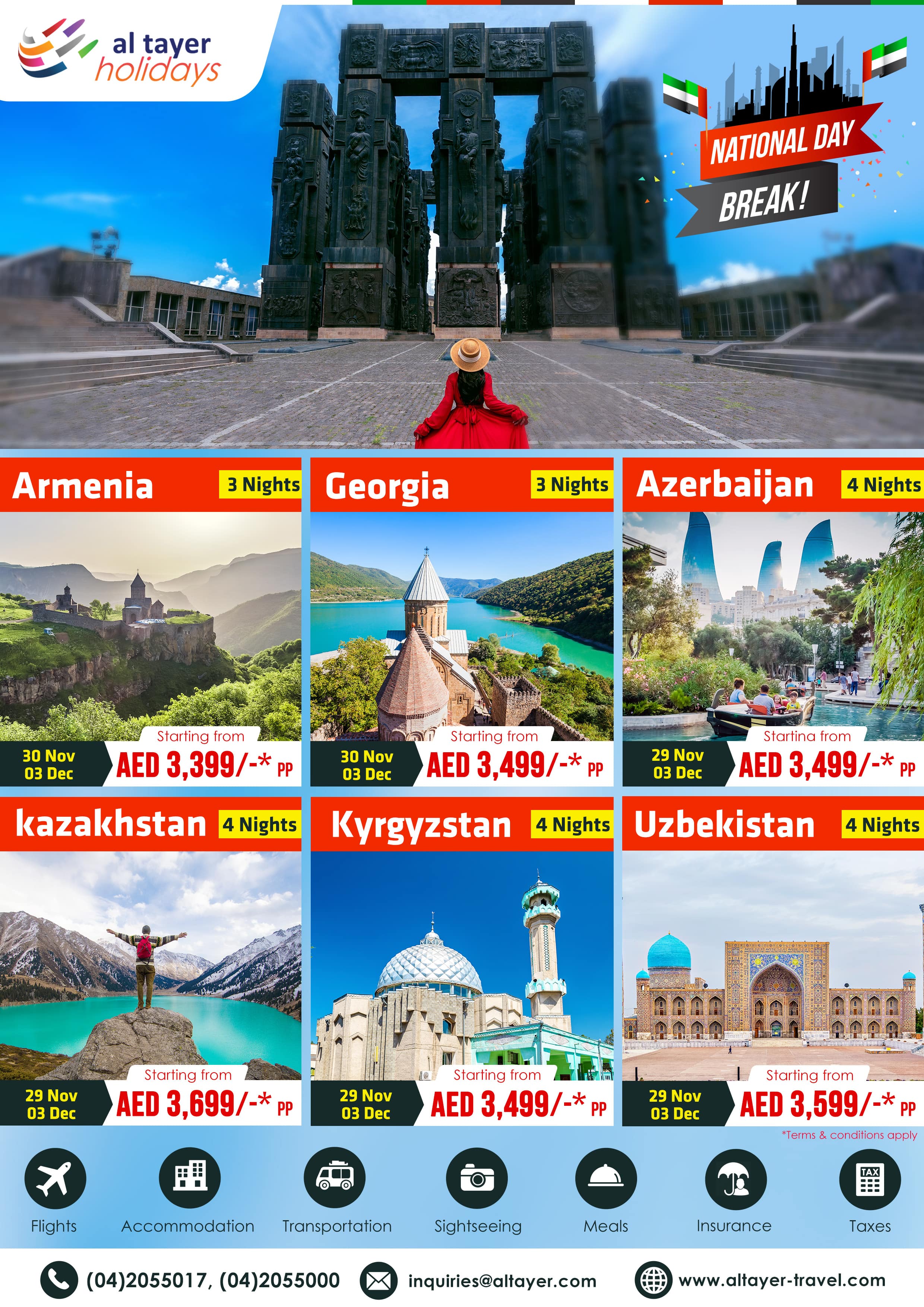 Celebrate UAE National Day in Style with Group Tour Packages to Georgia, Armenia, Azerbaijan, Kazakhstan, Kyrgyzstan & Uzbekistan.