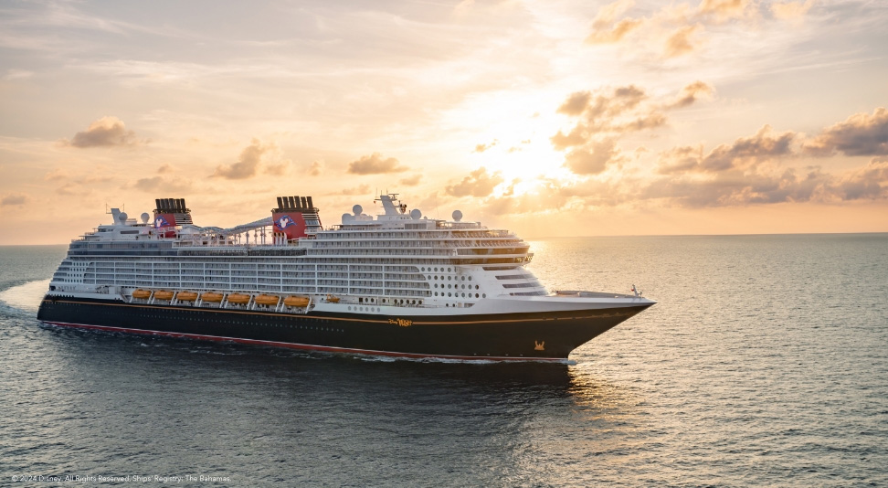 This 84,000-ton vessel sister to the Disney Magic sails to exciting destinations around the globe while treating Guests to the signature amenities and delightful surprises Disney is known for.
