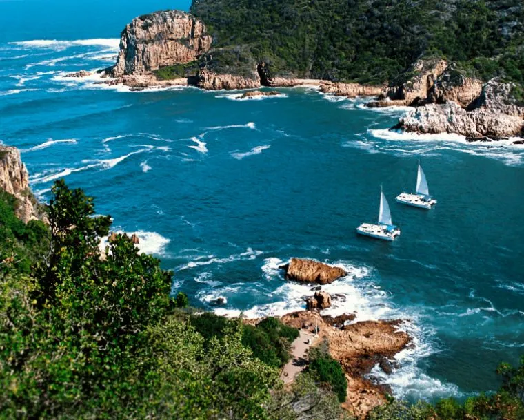 Knysna-Nestled between the imposing Outeniqua Mountains and the Indian Ocean and surrounded by world-renowned forests, Knysna offers a wealth of activities for visitors. The beautiful lagoon and more than eight beaches provide opportunities to swim, surf, canoe, yacht, jet-ski, boat, fish, walk on soft sand and take ferry rides. Various markets offer organic goods, delicious food, indigenous plants and a social atmosphere. Mountains, valleys, lakes, forests and streams are ready to be explored. The region isn’t known as the “Garden of Eden” for nothing! A birding route is available for avid bird watchers. World class golf courses are at your doorstep. And of course the area is famous for the Knysna Heads and delicious oysters.