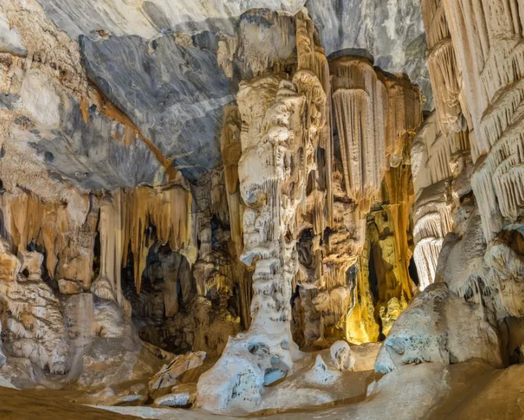 Cango Caves-The spectacular Cango Caves are a subterranean wonderland of magnificent stalactite and stalagmite rock formations that attracts thousands of visitors annually. They extend more than two kilometres into the Swartberg Mountains and visitors can take guided tours that wind through narrow passageways and steep stairways linking the massive caverns.