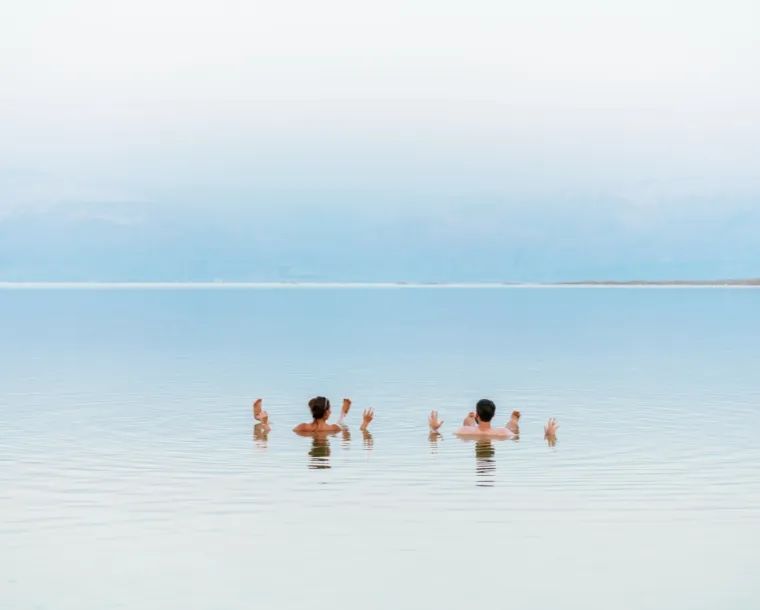 The Dead Sea – bordering Israel, the West Bank and Jordan – is a salt lake whose banks are more than 400m below sea level, the lowest point on dry land. Its famously hypersaline water makes floating easy, and its mineral-rich black mud is used for therapeutic and cosmetic treatments at area resorts. The surrounding desert offers many oases and historic sites.