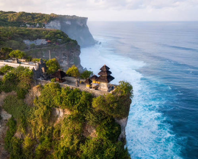 Bali is an Indonesian island known for its forested volcanic mountains, iconic rice paddies, beaches and coral reefs. The island is home to religious sites such as cliffside Uluwatu Temple. To the south, the beachside city of Kuta has lively bars, while Seminyak, Sanur and Nusa Dua are popular resort towns. The island is also known for its yoga and meditation retreats.