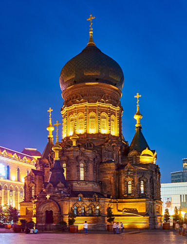 Harbin - is the capital of Heilongjiang, China’s northernmost province. The city grew in the late 19th century with the influx of Russian engineers constructing the eastern leg of the Trans-Siberian Railroad. The city's Russian architecture includes its green-domed Saint Sophia Cathedral, an Eastern Orthodox church now a local history museum. Across the river, Sun Island Park is famed for year-round ice sculptures.