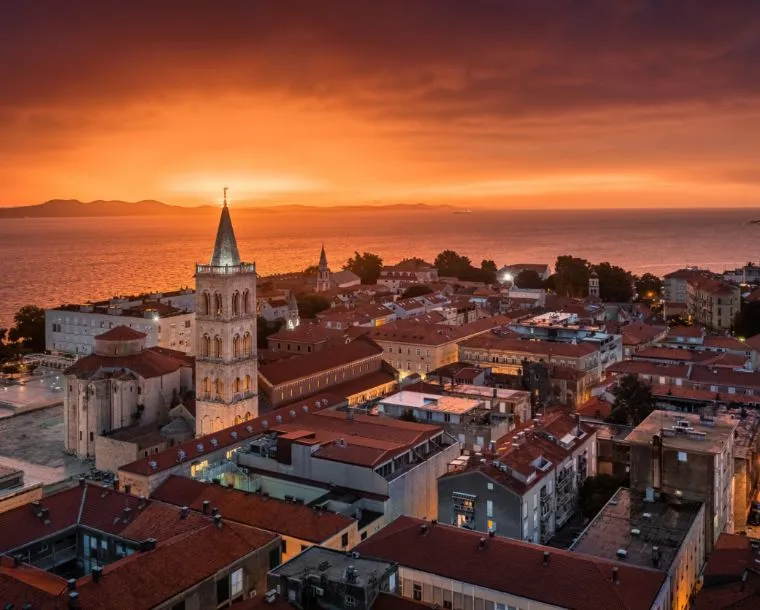 Zadar - a city on Croatia’s Dalmatian coast, is known for the Roman and Venetian ruins of its peninsular Old Town. There are several Venetian gates in the city walls. Surrounding the Roman-era Forum is 11th-century St. Mary’s Convent, with religious art dating to the 8th century. There’s also the grand, 12th-century St. Anastasia’s Cathedral and the round, 9th-century pre-Romanesque Church of St. Donatus.