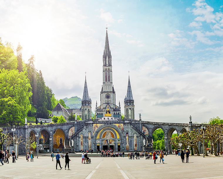 Lourdes is a town in southwestern France, in the foothills of the Pyrenees mountains. It’s known for the Sanctuaries Notre-Dame de Lourdes, or the Domain, a major Catholic pilgrimage site. Each year, millions visit the Grotto of Massabielle (Grotto of the Apparitions) where, in 1858, the Virgin Mary is said to have appeared to a local woman. In the grotto, pilgrims can drink or bathe in water flowing from a spring.
