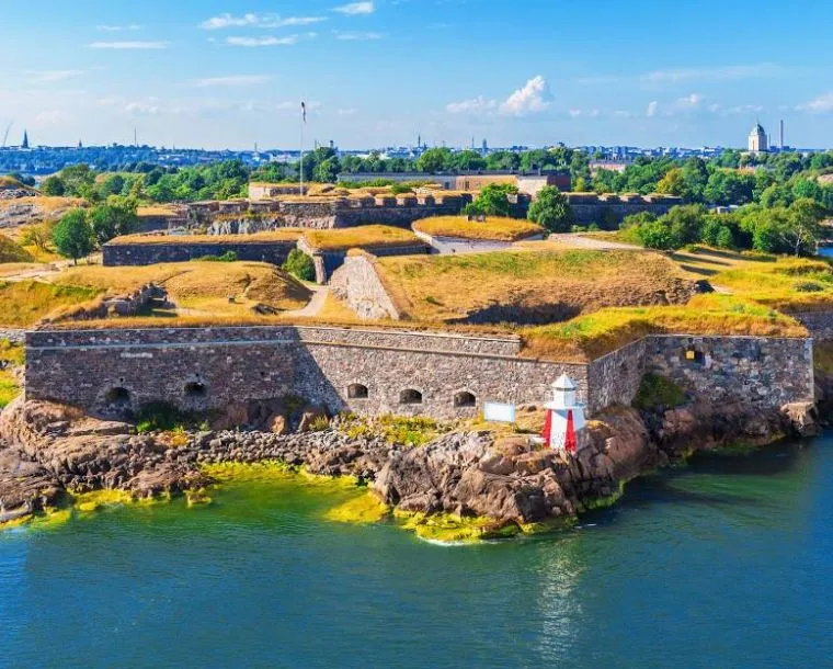 Finland-is a Northern European nation bordering Sweden, Norway and Russia. Its capital, Helsinki, occupies a peninsula and surrounding islands in the Baltic Sea. Helsinki is home to the 18th-century sea fortress Suomenlinna, the fashionable Design District and diverse museums. The Northern Lights can be seen from the country's Arctic Lapland province, a vast wilderness with national parks and ski resorts.