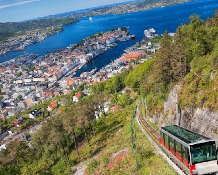 Bergen is a city on Norway’s southwestern coast. It's surrounded by mountains and fjords, including Sognefjord, the country’s longest and deepest. Bryggen features colorful wooden houses on the old wharf, once a center of the Hanseatic League's trading empire. The Fløibanen Funicular goes up Fløyen Mountain for panoramic views and hiking trails. The Edvard Grieg House is where the renowned composer once lived.