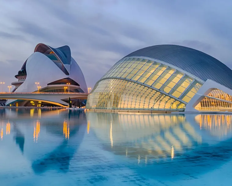 The port city of Valencia lies on Spain’s southeastern coast, where the Turia River meets the Mediterranean Sea. It’s known for its City of Arts and Sciences, with futuristic structures including a planetarium, an oceanarium and an interactive museum. Valencia also has several beaches, including some within nearby Albufera Park, a wetlands reserve with a lake and walking trails.