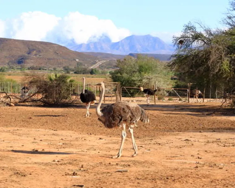 Safari Ostrich Showfarm-Safari Ostrich Show Farm is an operating farm where visitors will see large flocks of ostriches at different stages of development in the surrounding fields. Visitors are assured of personal attention and upon their arrival are greeted by one of our multi-lingual guides who will, during the course of the tour explain every aspect of ostrich farming, from breeding to rearing. The tour starts in the breeding camp, with a nest of ostrich eggs, where the first stage of the ostrich life cycle is explained. Visitors will get the opportunity to test the strength of the eggs by standing on them - a great photo opportunity. During the breeding season visitors get to see ostrich eggs hatching in the incubator rooms. Visitors get to sit on an ostrich and those who are brave enough can even try their hand at riding one. Every tour ends with an "Ostrich Derby" where local jockeys display their riding skills. A highly entertaining and educational tour is guaranteed.