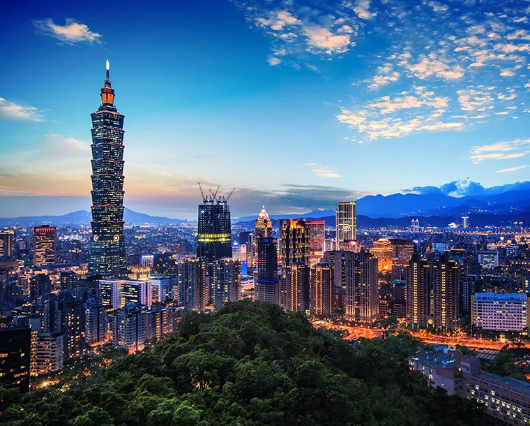 The capital of Taiwan, is a modern metropolis with Japanese colonial lanes, busy shopping streets and contemporary buildings. The skyline is crowned by the 509m-tall, bamboo-shaped Taipei 101 skyscraper, with upscale shops at the base and a rapid elevator to an observatory near the top. Taipei is also known for its lively street-food scene and many night markets, including expansive Shilin market.
