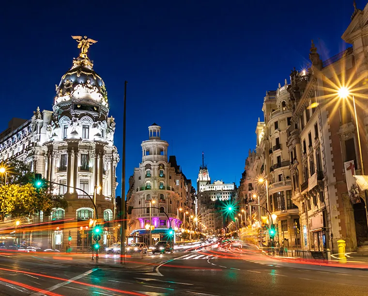 Want us to call you?Spain's central capital, is a city of elegant boulevards and expansive, manicured parks such as the Buen Retiro. It’s renowned for its rich repositories of European art, including the Prado Museum’s works by Goya, Velázquez and other Spanish masters. The heart of old Hapsburg Madrid is the portico-lined Plaza Mayor, and nearby is the baroque Royal Palace and Armory, displaying historic weaponry.