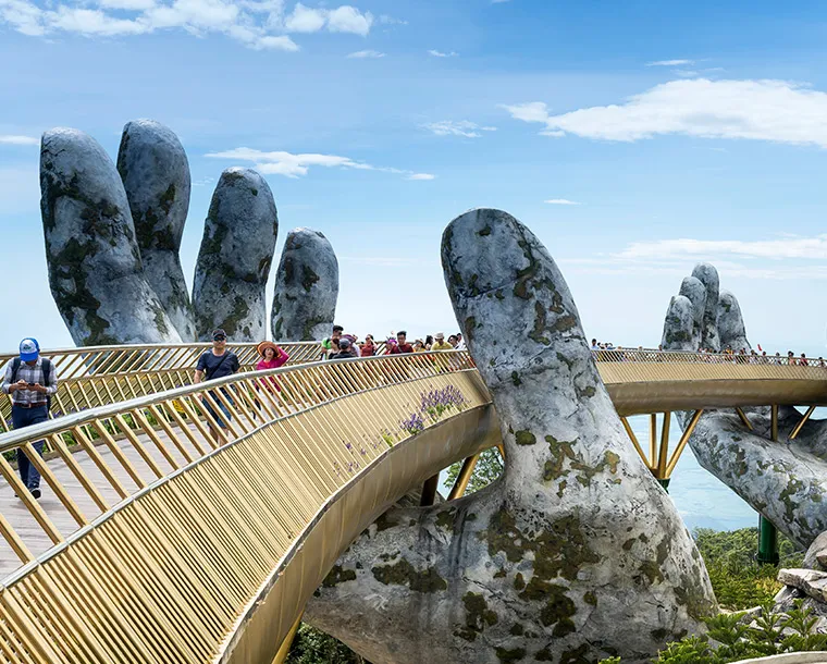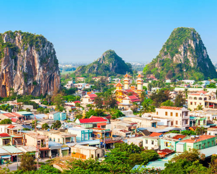 Da Nang is a coastal city in central Vietnam known for its sandy beaches and history as a French colonial port. It's a popular base for visiting the inland Bà Nà hills to the west of the city. Here the hillside Hải Vân Pass has views of Da Nang Bay and the Marble Mountains. These 5 limestone outcrops are topped with pagodas and hide caves containing Buddhist shrines.