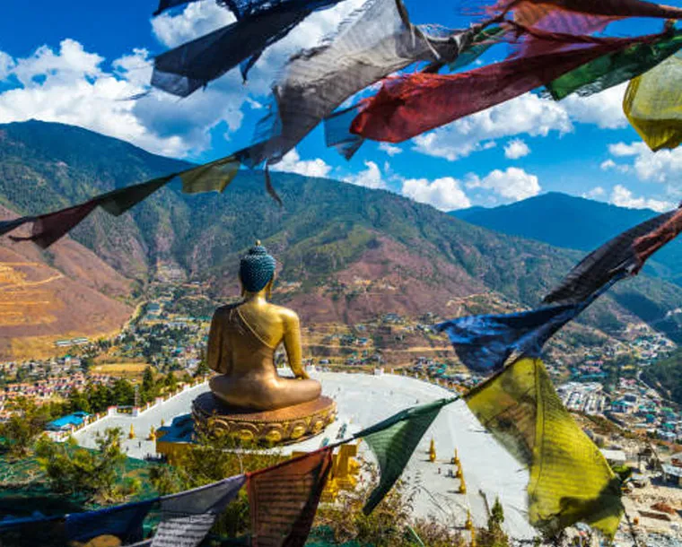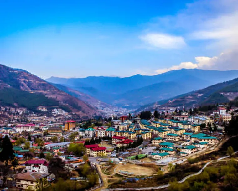 Bhutan’s capital, occupies a valley in the country’s western interior. In addition to being the government seat, the city is known for its Buddhist sites. The massive Tashichho Dzong is a fortified monastery and government palace with gold-leaf roofs. The Memorial Chorten, a whitewashed structure with a gold spire, is a revered Buddhist shrine dedicated to Bhutan’s third king, Jigme Dorji Wangchuck.