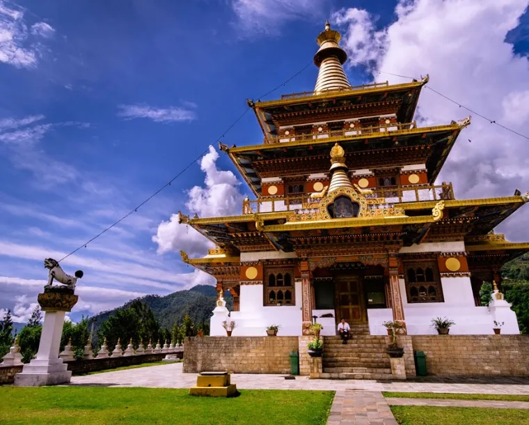 Bhutan’s capital, occupies a valley in the country’s western interior. In addition to being the government seat, the city is known for its Buddhist sites. The massive Tashichho Dzong is a fortified monastery and government palace with gold-leaf roofs. The Memorial Chorten, a whitewashed structure with a gold spire, is a revered Buddhist shrine dedicated to Bhutan’s third king, Jigme Dorji Wangchuck.
