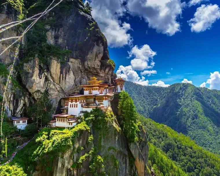 Bhutan - a Buddhist kingdom on the Himalayas’ eastern edge, is known for its monasteries, fortresses (or dzongs) and dramatic landscapes that range from subtropical plains to steep mountains and valleys. In the High Himalayas, peaks such as 7,326m Jomolhari are popular trekking destinations. Paro Taktsang monastery (also known as Tiger’s Nest) clings to cliffs above the forested Paro Valley. The Kingdom of Bhutan is a tranquil country where you can explore the ancient cultures, beautiful landscapes and magnificent architecture. Bhutan, called Druk Yul by its people, is known as the “Land of the Thunder Dragon”. It is one of the world’s most beautiful, yet mysterious places. It is located on the eastern edge of the Himalayan Mountain region. A large part of the area is forested welcoming a diverse ecosystem of flora and fauna. The country stretches from subtropical valleys and plains to snowcapped mountain ranges. This landscape makes it the perfect place to trek through the majestic valleys or steep mountains to visit ancient architecture and Buddhist temples.