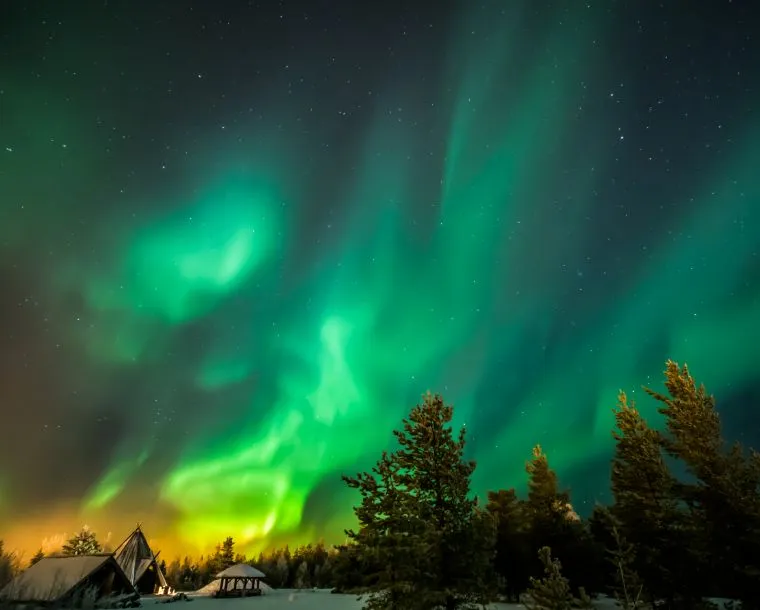 Snowmobile excursion into the wild to look for the northern lights dancing in the sky. Before returning to the city you’ll get to enjoy a hot beverage and a snack around a campfire with the guide. Snowmobiling is a great way to get a little adrenaline rush while in Lapland. Even if you’ve never been on a snowmobile before, it is not difficult for beginners to learn how to operate these machines. One hand on the throttle, the other on the brake, you’ll be zooming over frozen lakes and marked trails in no time. Snowmobile excursions are a great way to learn more about the region’s landscapes. And if you’re riding at night, you might even see the northern lights shining overhead during short breaks.