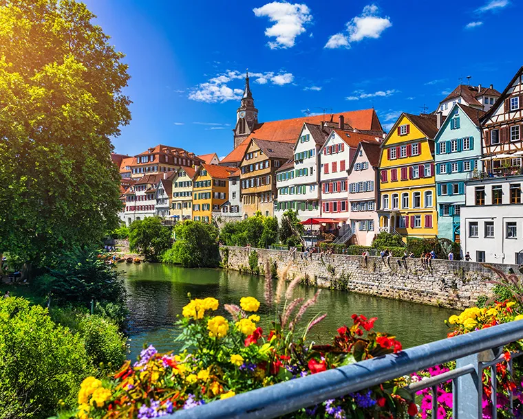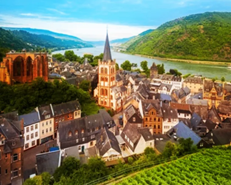 Breakfast at the hotel. Explore Heidelberg and Rhine Valley Day Trip. After boarding your luxury coach in central Frankfurt, you'll travel approximately 50 miles (80 km) south to the lovely city of Heidelberg. Often described as Germany's most beautiful city, Heidelberg will greet you with pretty Renaissance buildings, framed by vivid green hills on both sides of the River Neckar. Heidelberg Castle perches over the city, and a visit to its famous ruins will undoubtedly be a highlight of your full-day trip. The evocative castle was created as a combination of several buildings clustered around a courtyard, each one representing different styles of German architecture. The castle is home to many interesting artefacts, including the famous Heidelberg wine barrel that boasts a capacity of more than 51 US gallons (193 liters) of wine! You'll then take a walk around Heidelberg's medieval Old Town to see the famous Old Bridge (Karl Theodor Bridge), the beautiful Church of the Holy Spirit and Heidelberg University before transferring by coach to the UNESCO World Heritage-listed stretch of the impressive Rhine Valley. See romantic villages, pretty vineyards and medieval castles that frame the River Rhine. On reaching Kaub, you'll enjoy a relaxing cruise down the River Rhine toward the town of Rudesheim.