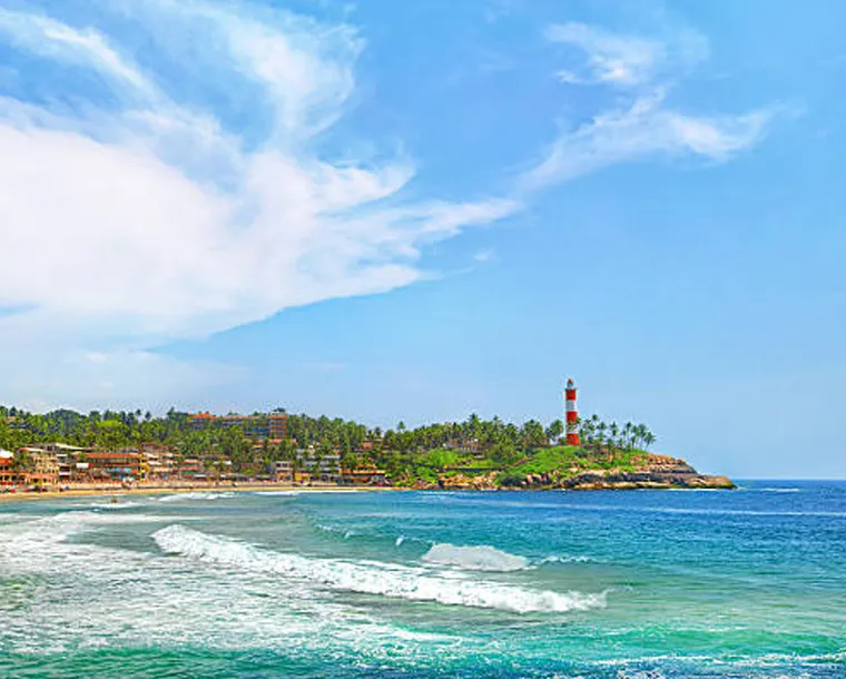Kovalam is a small coastal town in the southern Indian state of Kerala, south of Thiruvananthapuram. At the southern end of Lighthouse Beach is a striped lighthouse with a viewing platform. Heading south, Vizhinjam Juma Masjid mosque overlooks the busy fishing harbor. Inland, Sagarika Marine Research Aquarium displays technology used in pearl production. , it is internationally famed for its palm-fringed beaches and rejuvenating centres. This coastal town initially came to notice with the construction of Halcyon Castle by the last Maharani of Travancore - Sethu Lakshmi Bayi. With the arrival of hippies in 1970s, the place gained recognition as a tourist destination and is today renowned for its 17 km-long coastlines, which is formed by three beautiful beaches - Lighthouse, Hawah and Samudra.