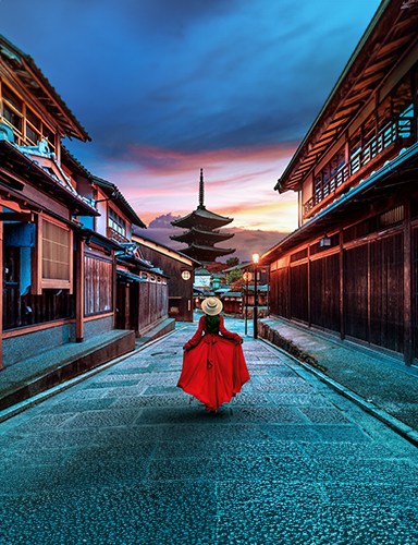 once the capital of Japan, is a city on the island of Honshu. It's famous for its numerous classical Buddhist temples, as well as gardens, imperial palaces, Shinto shrines and traditional wooden houses. It’s also known for formal traditions such as kaiseki dining, consisting of multiple courses of precise dishes, and geisha, female entertainers often found in the Gion district.