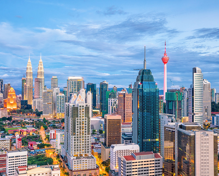 Kuala Lumpur is the capital of Malaysia. Its modern skyline is dominated by the 451m-tall Petronas Twin Towers, a pair of glass-and-steel-clad skyscrapers with Islamic motifs. The towers also offer a public skybridge and observation deck. The city is also home to British colonial-era landmarks such as the Kuala Lumpur Railway Station and the Sultan Abdul Samad Building.