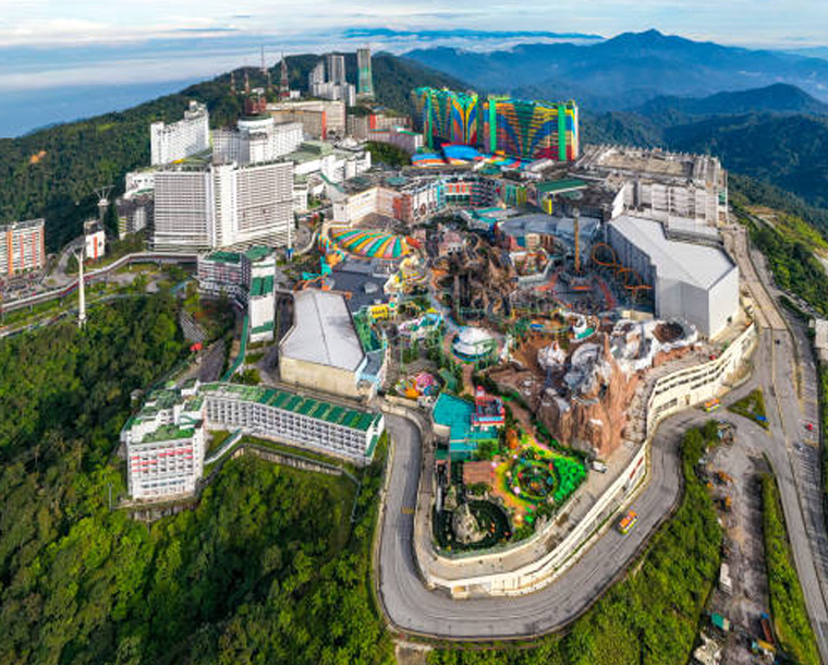 Genting Highlands means fun for all the family, with its casinos, bowling alley, landscaped lake, mini train and bumper cars. Amidst the freshness of cool, crisp mountain air about 6000 feet above sea level, lies Malaysia's only casino resort. Stop at the cable car station and take a skyway cable car ride (cable car ticket at own expense), with the sky above you and a tropical rainforest below, ride up to the hilltop on the longest and fastest cable car in Southeast Asia.