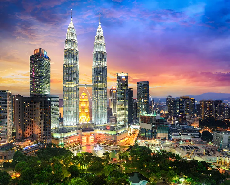 Kuala Lumpur is the capital of Malaysia. Its modern skyline is dominated by the 451m-tall Petronas Twin Towers, a pair of glass-and-steel-clad skyscrapers with Islamic motifs. The towers also offer a public sky bridge and observation deck. The city is also home to British colonial-era landmarks such as the Kuala Lumpur Railway Station and the Sultan Abdul Samad Building.