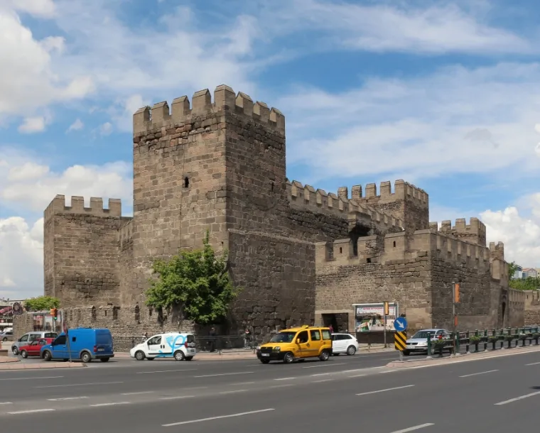 Kayseri is a large industrialised city in Central Anatolia, Turkey. It is the seat of Kayseri Province. The monumental black-basalt walls of Kayseri castle were first constructed under Roman emperor Gordian III and rebuilt by the Byzantine emperor Justinian 300 years later. The imposing edifice you see today though is mostly the work of 13th-century Seljuk sultan Alaattin Keykubat.