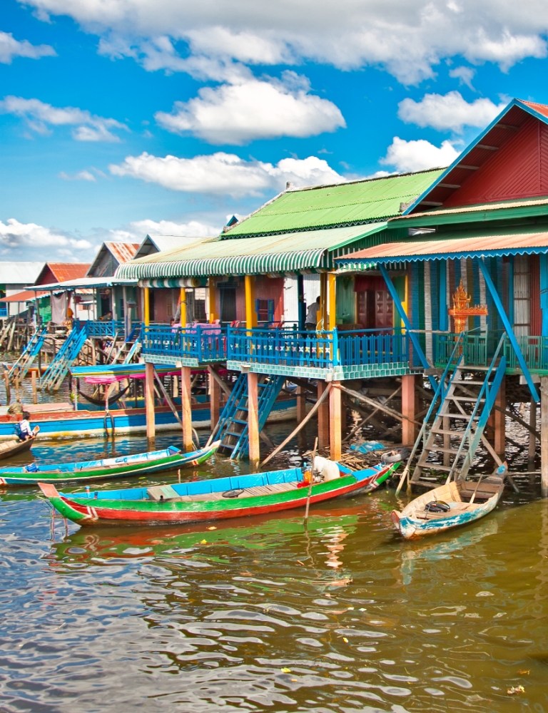 There are 3 floating villages to choose from in the country. The houses are built on bamboo stilts, and there are always boats filled with people selling trinkets, food, and hanging out. The Chong Khneas is the most visited in the country but popularity has made it a bit of a tourist trap recently.