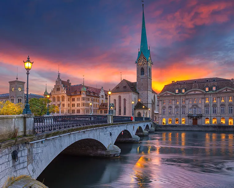 On arrival at Zurich International Airport, make your way to the train station which is connected to the airport and board the train to Zurich main station. On arrival in Zurich make your way to the hotel and check in.