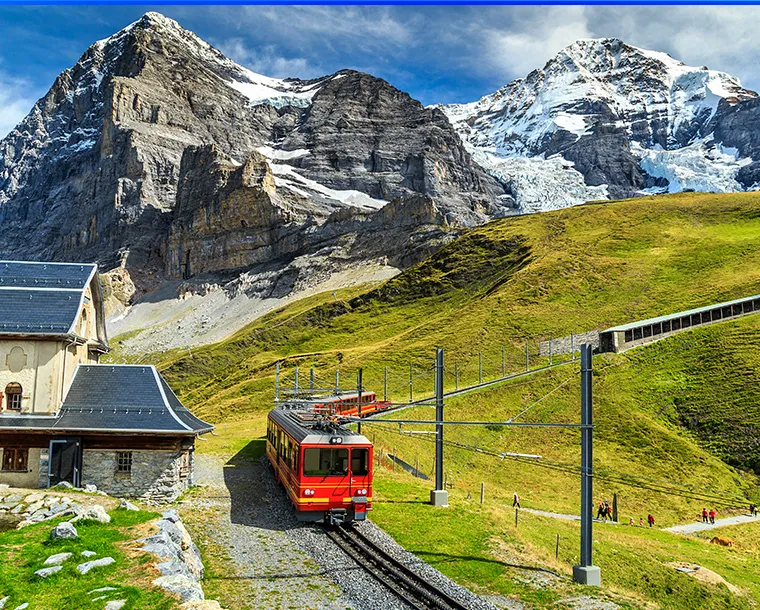 Swiss Cities (8 transfers) incl. excursion Rhine Falls, Titlis and Jungfraujoch in 2nd class from/to Swiss border or airport