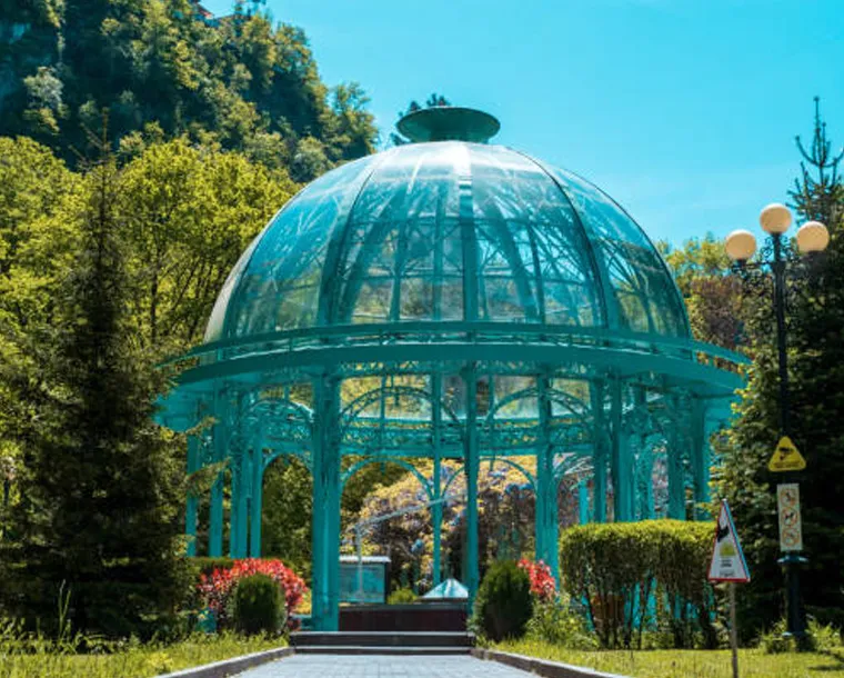 Borjomi is a resort town in central Georgia. It's known for its mineral waters, with springs in Borjomi Central Park. Defined by its striking exterior, the Romanov Palace contains ornate furniture and a billiards room. Nearby, trails wind through the vast wilderness of Borjomi-Kharagauli National Park. In the park, the centuries-old Mtsvane Monastery (Green Monastery) is made of green-tinged stones.