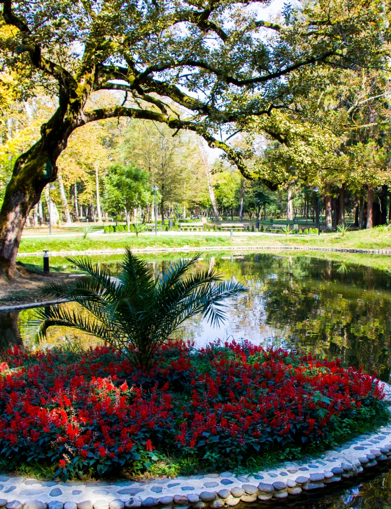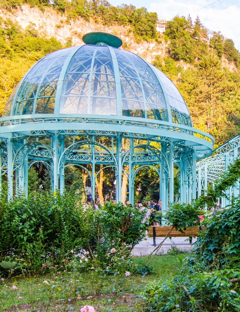Borjomi is a resort town in central Georgia. It's known for its mineral waters, with springs in Borjomi Central Park. Defined by its striking exterior, the Romanov Palace contains ornate furniture and a billiards room. Nearby, trails wind through the vast wilderness of Borjomi-Kharagauli National Park. In the park, the centuries-old Mtsvane Monastery (Green Monastery) is made of green-tinged stones.