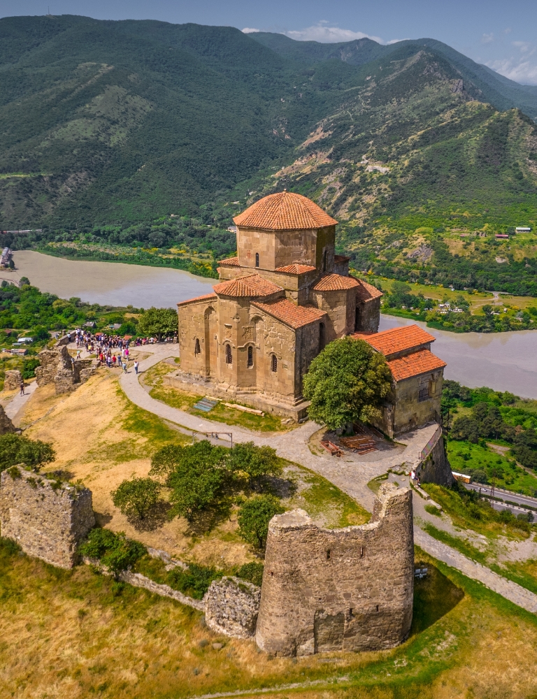Georgia- a country at the intersection of Europe and Asia, is a former Soviet republic that’s home to Caucasus Mountain villages and Black Sea beaches. It’s famous for Vardzia, a sprawling cave monastery dating to the 12th century, and the ancient wine-growing region Kakheti. Tbilisi is the capital of the country of Georgia. Its cobblestoned old town reflects a long, complicated history, with periods under Persian and Russian rule. Its diverse architecture encompasses Eastern Orthodox churches, ornate art nouveau buildings and Soviet Modernist structures. Looming over it all are Narikala, a reconstructed 4th-century fortress, and Kartlis Deda, an iconic statue of the “Mother of Georgia.”