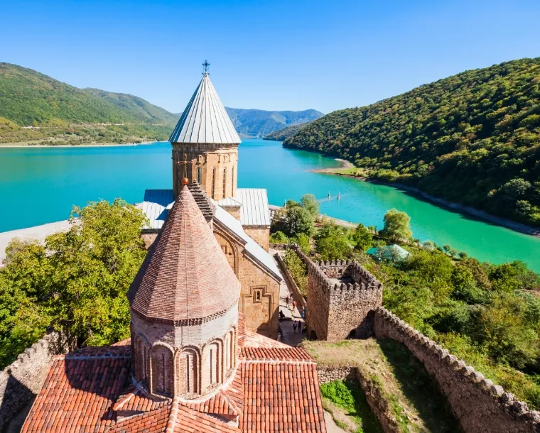 Ananuri is a Historic riverside castle complex. Many battles took place at this historic castle complex with 2 churches & scenic river views.